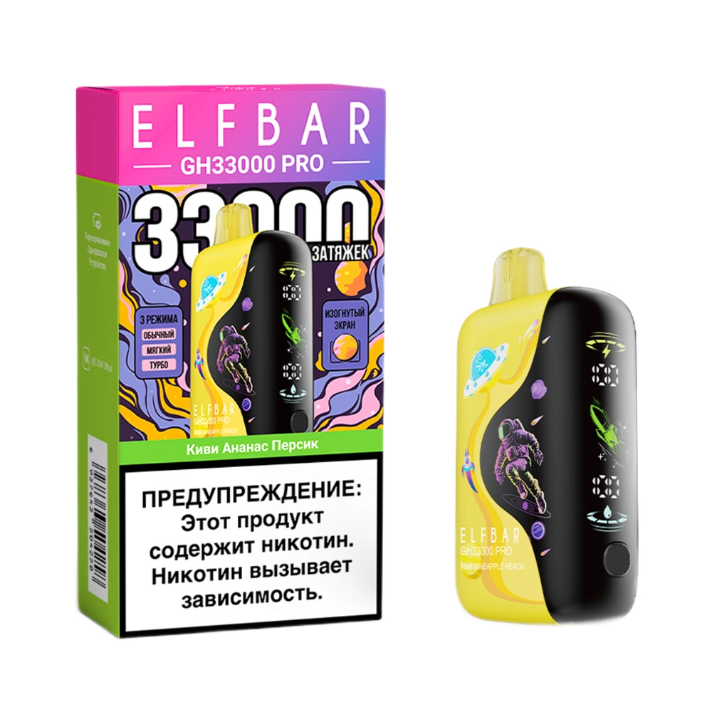 Купить одноразовую электронную сигарету ELFBAR GH33000 PRO Киви Ананас Персик вы можете в нашем интернет-магазине по доступной цене. Мы предлагаем быструю доставку по Санкт-Петербургу и всей России. Оформляйте заказ онлайн, и мы доставим его в кратчайшие сроки удобным для вас способом.В нашем каталоге представлены только оригинальные одноразовые электронные сигареты и жидкости для вейпа от проверенных производителей. Выберите идеальный вкус и наслаждайтесь комфортным и безопасным парением.