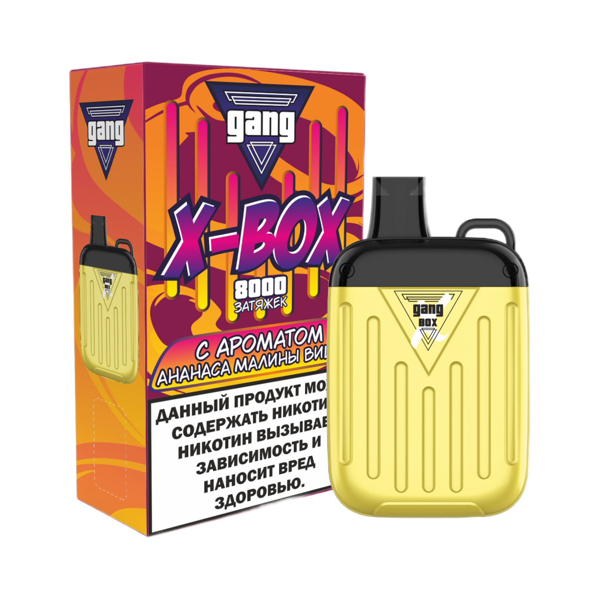 Закажите одноразовые электронные сигареты GANG X-BOX 8000 Ананас Малина Вишня и откройте для себя насыщенные вкусы с максимальным удобством!