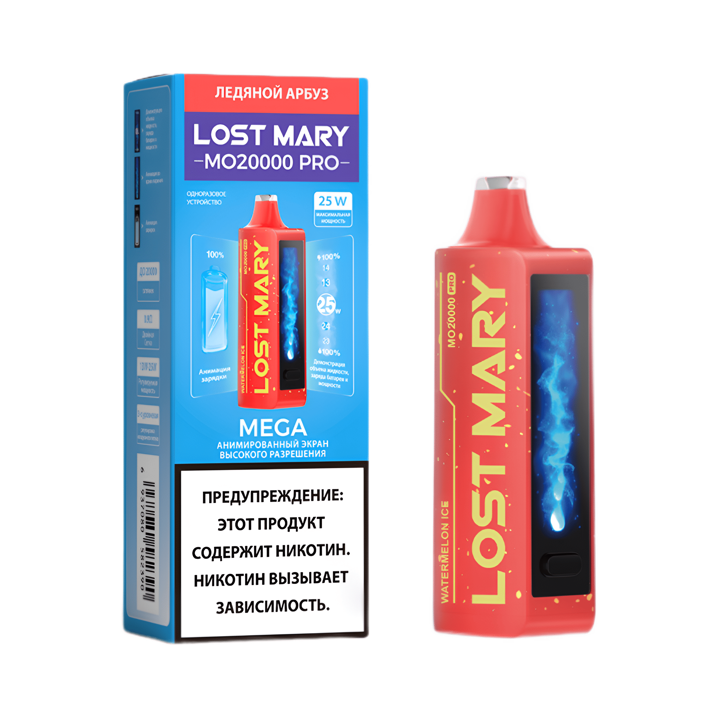 Одноразовые электронные сигареты LOST MARY MO20000 PRO со вкусом Арбуз со льдом – это идеальное сочетание яркого вкуса, компактности и высокой производительности. Устройство оснащено емким аккумулятором на 800 mAh с функцией подзарядки через USB Type-C, а также большим баком на 18 мл с премиальной жидкостью.Солевой никотин крепостью 20 мг/мл (Strong обеспечивает мягкую и насыщенную затяжку, подходящую как для новичков, так и для опытных пользователей.