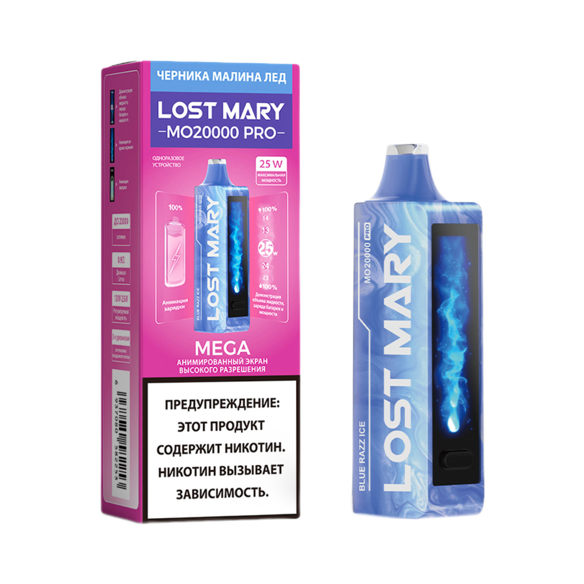 Одноразовые электронные сигареты LOST MARY MO20000 PRO со вкусом Черника Малина лёд – это идеальное сочетание яркого вкуса, компактности и высокой производительности. Устройство оснащено емким аккумулятором на 800 mAh с функцией подзарядки через USB Type-C, а также большим баком на 18 мл с премиальной жидкостью.Солевой никотин крепостью 20 мг/мл (Strong обеспечивает мягкую и насыщенную затяжку, подходящую как для новичков, так и для опытных пользователей.