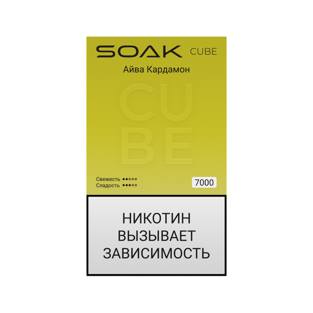 Купить одноразовую электронную сигарету SOAK CUBE 7000 Айва Кардамон вы можете в нашем интернет-магазине по доступной цене. Мы предлагаем быструю доставку по Санкт-Петербургу и всей России. Оформляйте заказ онлайн, и мы доставим его в кратчайшие сроки удобным для вас способом.В нашем каталоге представлены только оригинальные одноразовые электронные сигареты и жидкости для вейпа от проверенных производителей. Выберите идеальный вкус и наслаждайтесь комфортным и безопасным парением.