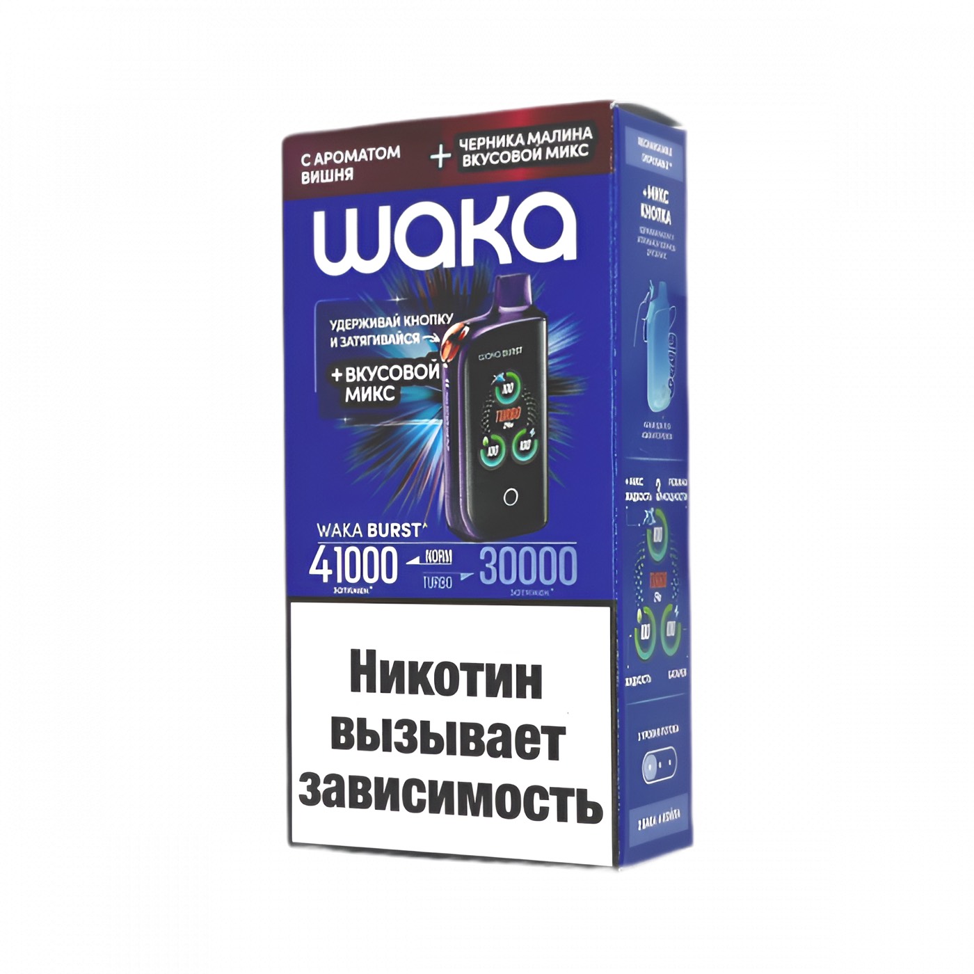 Купить одноразовую электронную сигарету электронные сигареты WAKA BURST 41000 Вишня + Черника Малина Микс вы можете в нашем интернет-магазине по доступной цене. Мы предлагаем быструю доставку по Санкт-Петербургу и всей России. Оформляйте заказ онлайн, и мы доставим его в кратчайшие сроки удобным для вас способом. В нашем каталоге представлены только оригинальные одноразовые электронные сигареты и жидкости для вейпа от проверенных производителей. Выберите идеальный вкус и наслаждайтесь комфортным и безопасным парением.