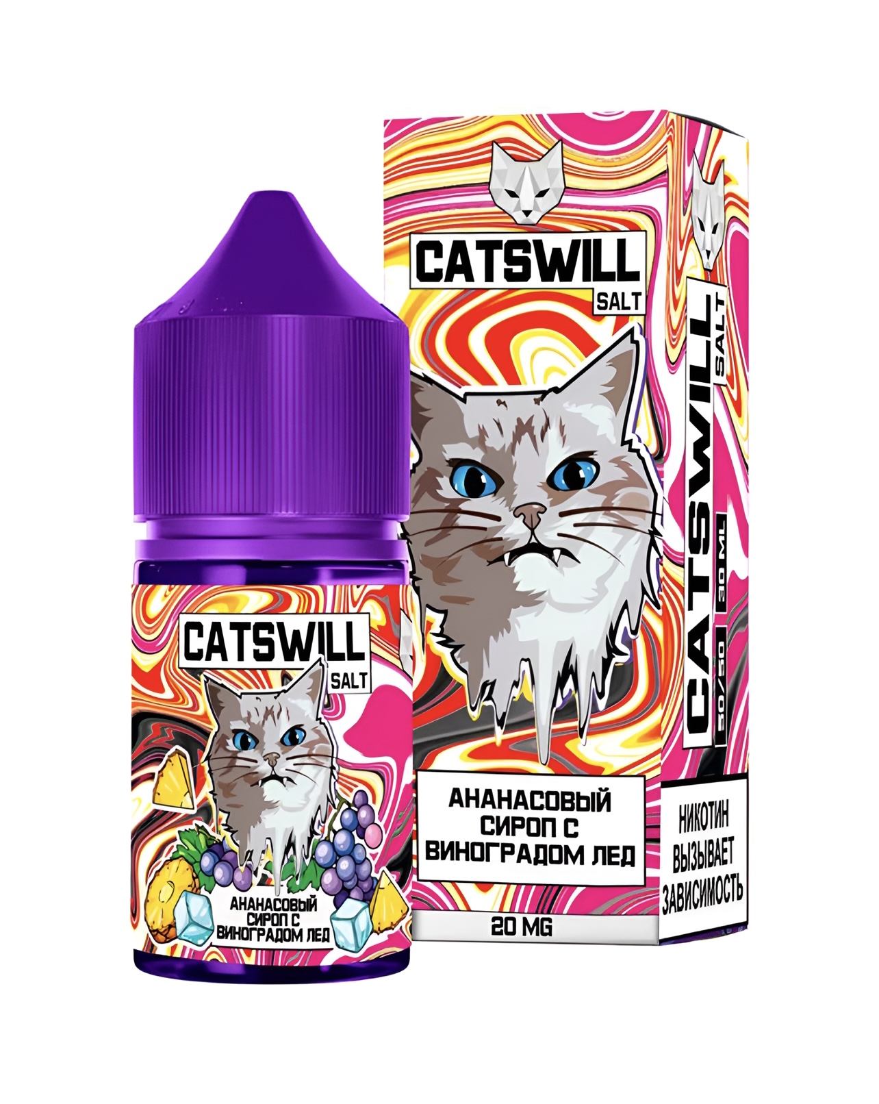 Жидкость для вейпа Жидкость CATSWILL Ананасовый сироп с виноградом лёд – это идеальное сочетание яркого вкуса, компактности и высокой производительности.Состав жидкости включает только лучшие ингредиенты, что обеспечивает стабильное качество и превосходный вкус на протяжении всего времени использования.Солевой никотин крепостью 20 мг/мл (Ultra обеспечивает мягкую и насыщенную затяжку, подходящую как для новичков, так и для опытных пользователей.