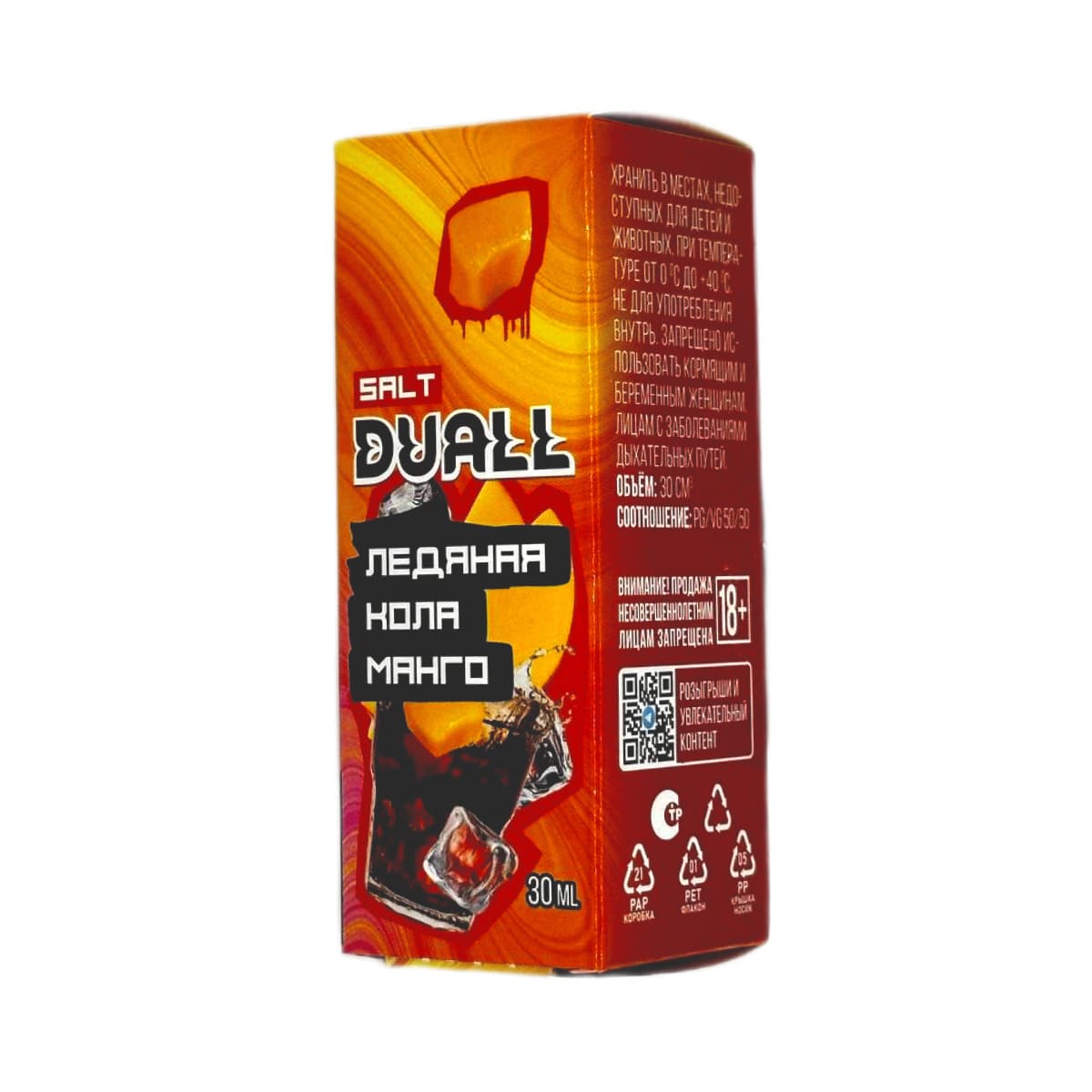 Жидкость для вейпа Жидкость DUALL Ледяная кола Манго – это идеальное сочетание яркого вкуса, компактности и высокой производительности.Состав жидкости включает только лучшие ингредиенты, что обеспечивает стабильное качество и превосходный вкус на протяжении всего времени использования.Солевой никотин крепостью 20 мг/мл (Ultra обеспечивает мягкую и насыщенную затяжку, подходящую как для новичков, так и для опытных пользователей.