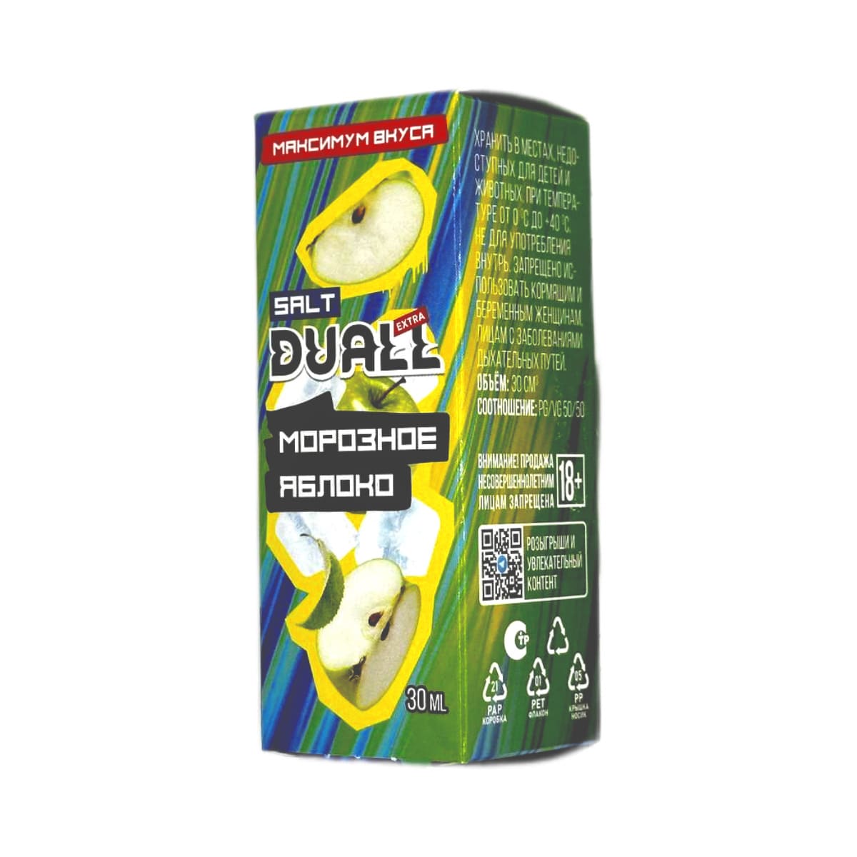 Жидкость для вейпа Жидкость DUALL Морозное яблоко – это идеальное сочетание яркого вкуса, компактности и высокой производительности.Состав жидкости включает только лучшие ингредиенты, что обеспечивает стабильное качество и превосходный вкус на протяжении всего времени использования.Солевой никотин крепостью 20 мг/мл (Ultra обеспечивает мягкую и насыщенную затяжку, подходящую как для новичков, так и для опытных пользователей.