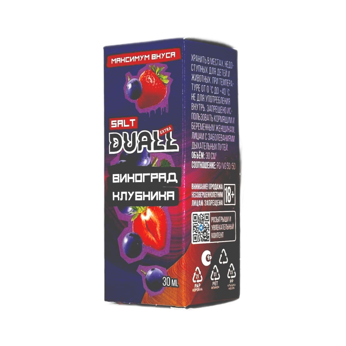 Жидкость для вейпа Жидкость DUALL Виноград Клубника – это идеальное сочетание яркого вкуса, компактности и высокой производительности.Состав жидкости включает только лучшие ингредиенты, что обеспечивает стабильное качество и превосходный вкус на протяжении всего времени использования.Солевой никотин крепостью 20 мг/мл (Ultra обеспечивает мягкую и насыщенную затяжку, подходящую как для новичков, так и для опытных пользователей.
