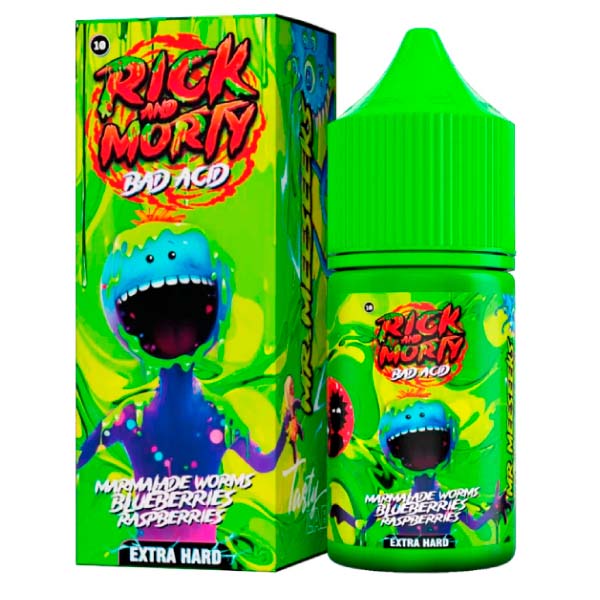 Оформляйте заказ на жидкость для вейпа Жидкость Rick and Morty BAD ACID Мармеладные червячки Голубика Малина прямо сейчас и наслаждайтесь яркими вкусами в каждой затяжке!